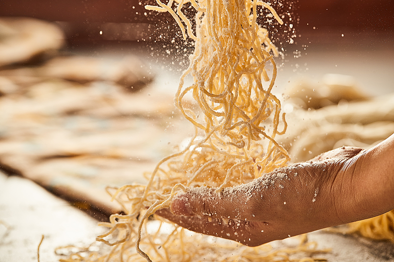 在南方,多种特色的面条熨帖着人们挑剔的味蕾:杭州片儿川、福建虾面、广东竹升面、扬州阳春面、镇江锅盖面……风味十足,充满意趣。