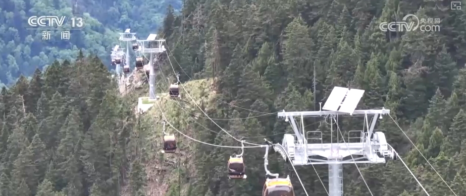 官鹅沟景区集湖泊、瀑布、森林、高山草甸等自然景观于一体,海拔落差近2400米。随着海拔逐渐升高,视野也变得开阔。在雷古山山脚下,游客可以乘坐观光缆车直达山顶。这条长度在2400米的缆车,带游客俯瞰山中景色,也成为大家歇脚的空中驿站。