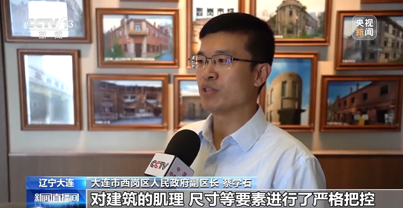 大连市西岗区人民政府副区长 蔡学石:我们为每处建筑都制定了专属的保护方案,对建筑的肌理、尺寸等要素进行严格把控,按照现代建筑设计与传统风貌建筑保护共存、兼顾利用的原则,采取五大修缮工艺和七大修缮材质,将这里焕然一新。