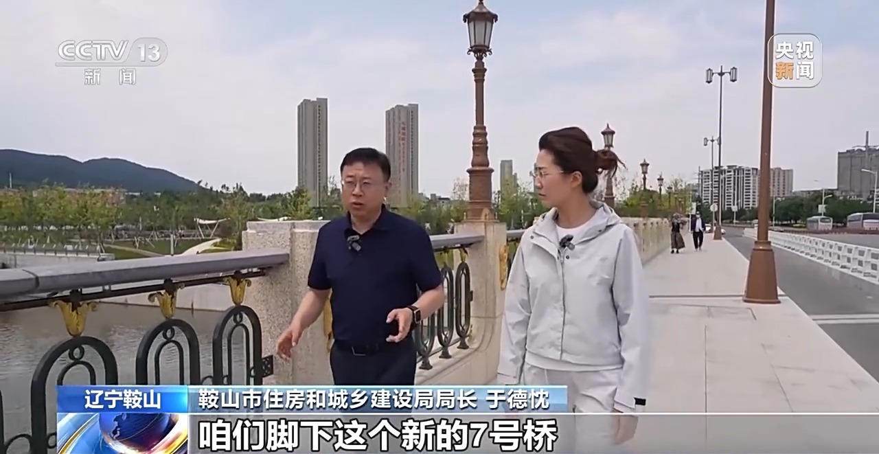鞍山市住房和城乡建设局局长 于德忱:咱们脚下这个新的7号桥,就是我们新建的7号桥,长度是140米,宽度是40米,由我们过去行洪能力30年一遇,现在已经提升到百年一遇。