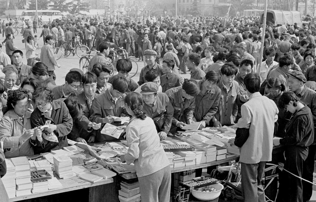 1984年,云南省昆明市,市民在东风广场踊跃购书。刘建明/摄