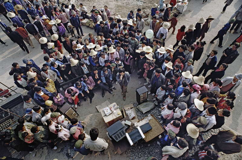 1991年,云南省新平县漠沙乡,乡村集市上火爆的卡拉OK摊位。刘建明/摄