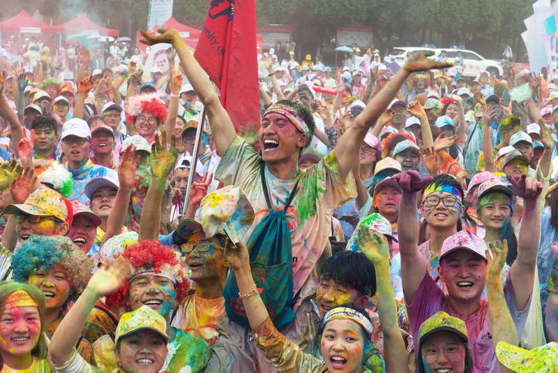 2018年,云南民族大学学生“彩虹跑”活动成了校园里的狂欢节。刘建明/摄