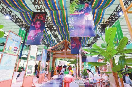 要深入感受一座城市的烟火气,农贸市场是不错的目的地。旅居云南馆里,大观篆新农贸市场、五里多农博广场等昆明网红农贸市场里的“顶流”被搬到现场,七彩番茄、干巴菌、天麻、酸多依等特色食品琳琅满目。“今年春菜春花上市时,我姐姐随朋友到五里多农博广场打卡,回国后还意犹未尽地跟我分享见闻。”正在展台前了解食材的马来西亚客商陈秀丽说,云南的菜市场就是云南本味博物馆,南博会结束后,她还要实地逛逛菜市,零距离体验云南的幸福生活。