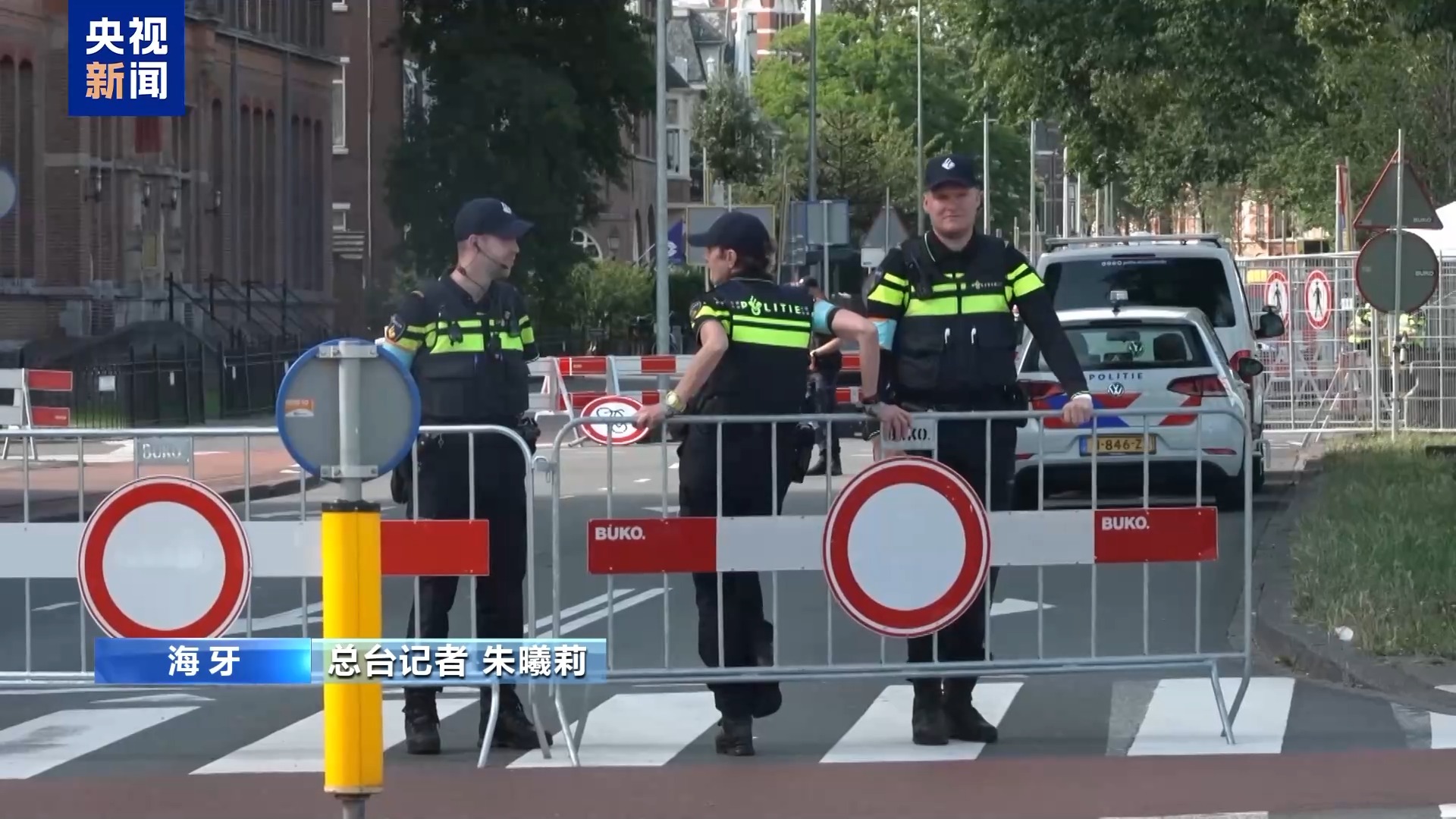 总台记者 朱曦莉:我所在的位置就是此次北约峰会主会场海牙世界论坛会议中心附近。大家可以看到,通往会场的道路已经铺设了像我身后这样的长长的铁丝网,铁丝网长度有5公里,周边主干道也处于全面的管控,可以说海牙整个城市都进入高度戒备状态之中。荷兰还部署了近一半的全国警力,大约2.7万名警察参与安保工作。而如此严密的安保措施,既是为峰会本身“保驾”,也是应对接连不断的反北约抗议活动。这引起当地民众的强烈不满。