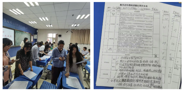 在竞赛互评环节,评分工作细致入微,每份评分表均要求评委写下评价意见,针对讲题教师的讲题过程,深入挖掘亮点,提出建设性建议,并进行自我启发反思。从题目深度解读、讲题方法到讲解过程,全方位的研训助力教师将讲题要求融入日常教学,为打造学习型教师团队凝聚力量。