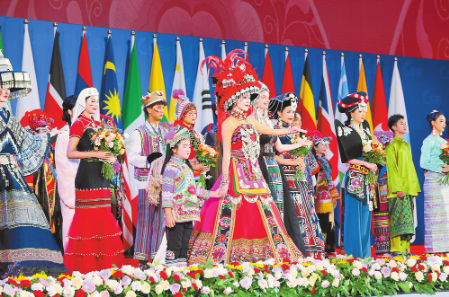 台上裙裾飞扬,台下喝彩不断。每一场走秀都吸引很多人驻足、拍照,越南留学生阮氏红玉兴奋地借来走秀的服装穿在身上拍下视频,市民张宏则表示因为喜欢民族服饰文化的“时尚表达”已连续看了三场秀。