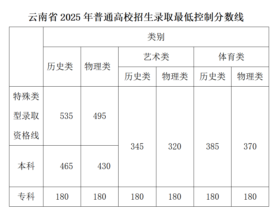 普通本科批次历史类465分 物理类430分 云南省2025年高考录取分数线划定