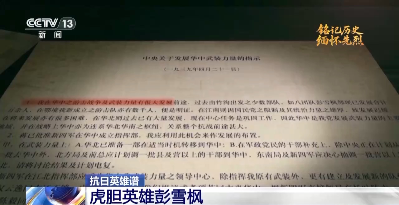 中国新四军研究会副会长 刘春灏:当时的作战参谋就劝他到房子里边去隐蔽,但是彭雪枫坚持指挥战斗,他说指挥员的位置就应该在前线。