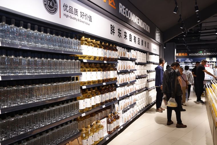 食百区则重点引入了深受消费者喜爱的胖东来同款商品,包括DL精酿啤酒、DL燕麦片、DL复合果汁、DL自由爱白酒等,覆盖了饮品、零食、粮油、清洁等多个品类,让消费者在家门口就能便捷购买到胖东来的口碑好物。同时,永辉优选系列商品也占据重要位置,如近期热销的黑松露火腿苏打饼干、永辉优选快熟燕麦片、夏季爆款小青柠汁饮料等,为品质生活提供更多元的选择。