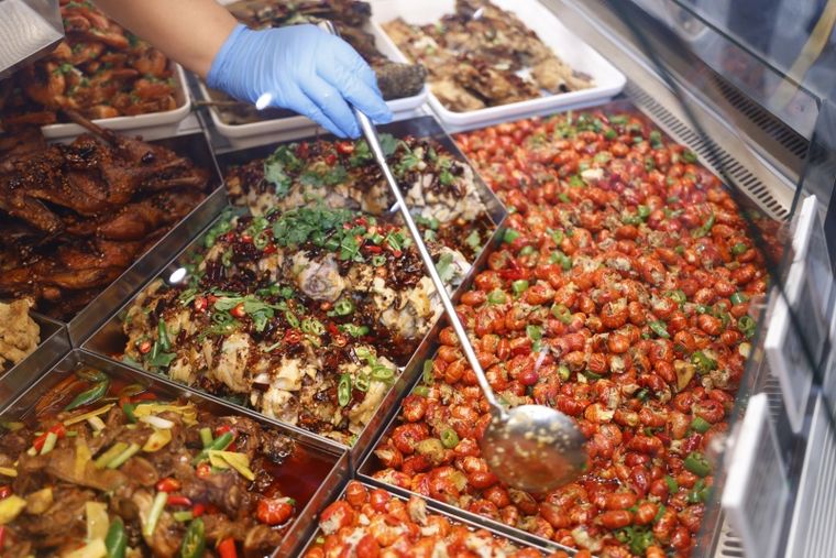循香移步,熟食档口浓浓的烟火气扑面而来。本地特色傣味鸡爪以传统手工腌制工艺亮相;胖东来同款香辣牛肉条、秘卤肉肠、网红小甜肠、韩式炸鸡吸引年轻食客扫码下单。据门店负责人介绍,“现制的熟食商品达到了390支,日邦、双汇品牌加盟提升品质,与昆明夜宵文化深度契合。”