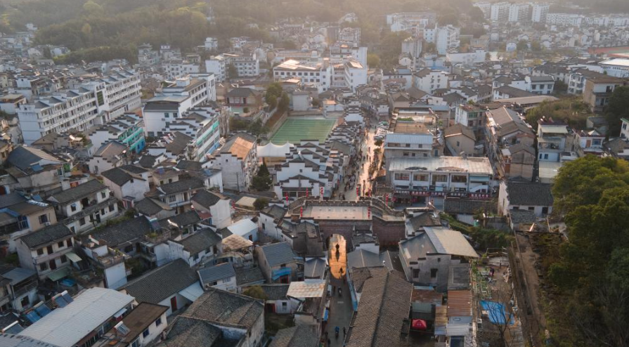 An aerial drone photo taken on March 26, 2025 shows a view of the Huizhou ancient town in Shexian County, east China's Anhui Province. (Xinhua/Zhang Duan)
