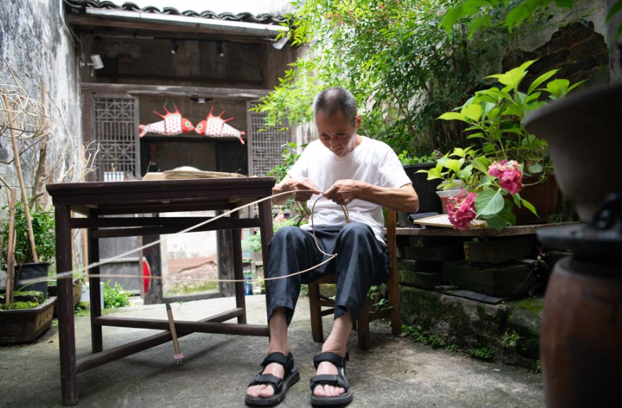 An artisan makes a fish lantern in the Huizhou ancient town of Shexian County, east China's Anhui Province, June 20, 2025. (Xinhua/Zhang Duan)