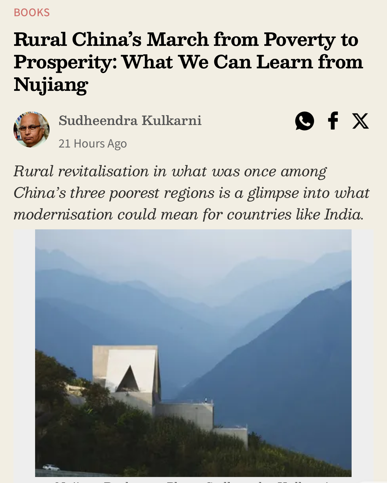 印度新闻网站“连线”(The Wire)近日的一篇署名文章,讲述了作者——印度知名学者苏廷德拉· 库尔卡尼不久前在中国云南怒江州参加一个国际会议时的所见所感。