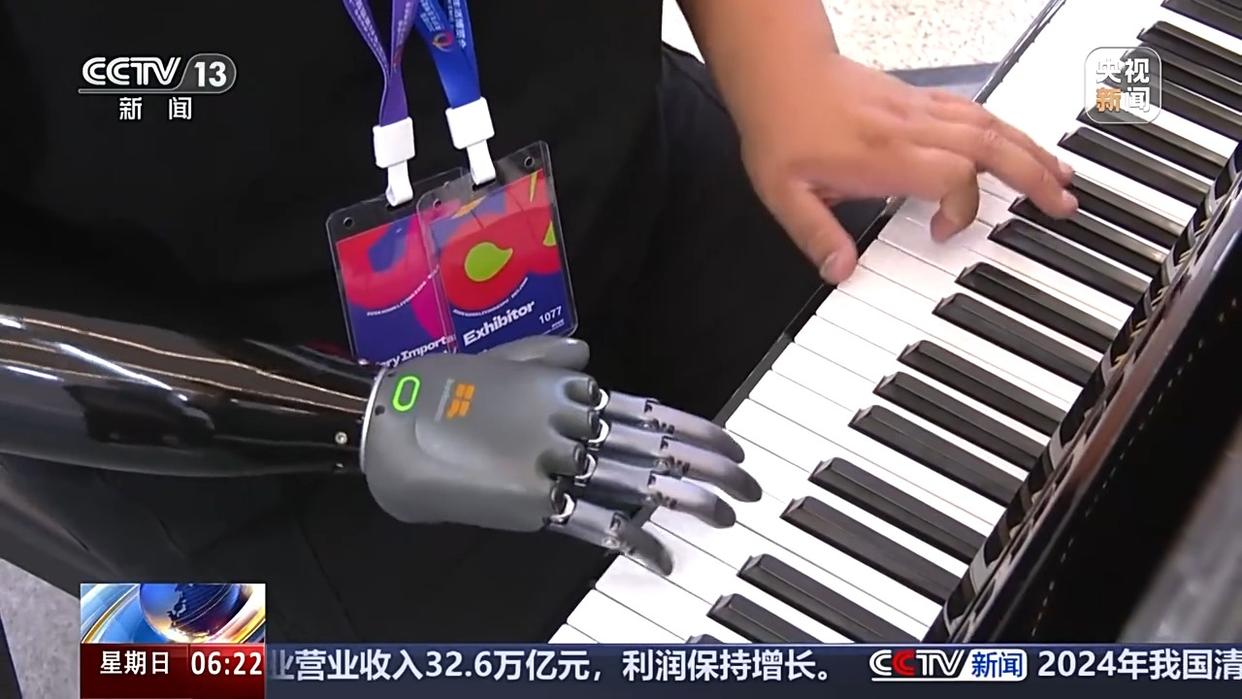 正在弹钢琴的这个小伙失去了右手,但如今通过智能仿生手,可以丝滑地弹奏一首曲子。而且写毛笔字、调鸡尾酒、咖啡拉花都可以通过大脑指挥仿生手完成。