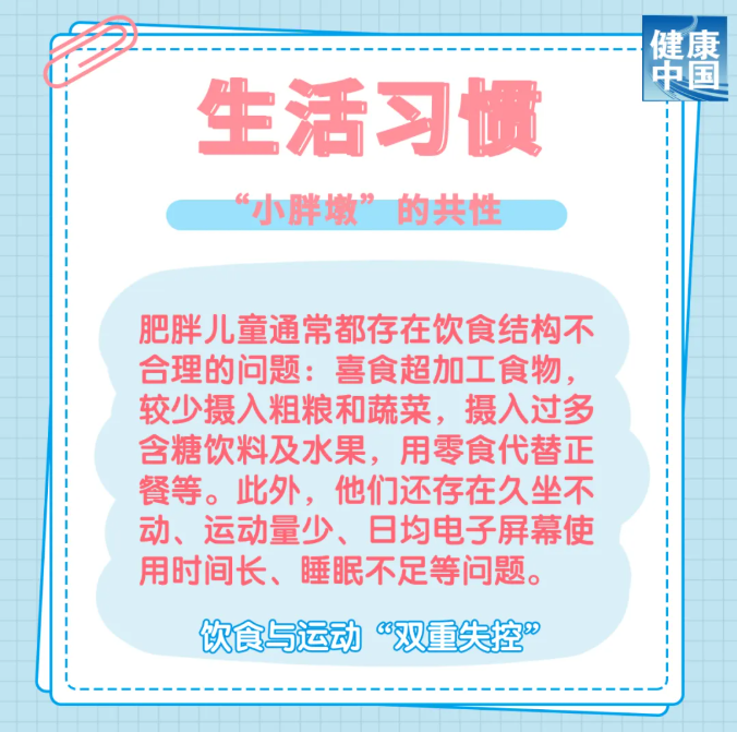 门诊中,小明的情况并非个例。前来就诊的“小胖墩”,往往具有以下几个特征。
