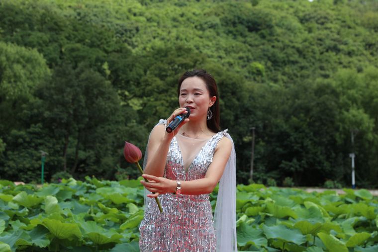 活动现场气氛热烈。满池荷花摇曳生姿,舞蹈演员们身着绚丽服饰,在音乐伴奏下翩然起舞,灵动的舞姿与荷塘美景相互映衬,当地村民的民族歌舞表演,风格多样。罗平县文旅推荐官、青年歌手关兴瞳带来的歌曲将现场气氛拉到高潮。