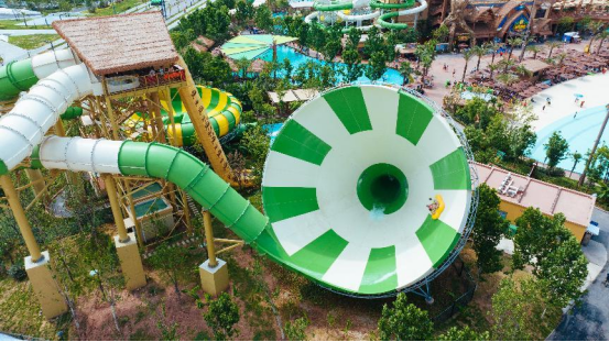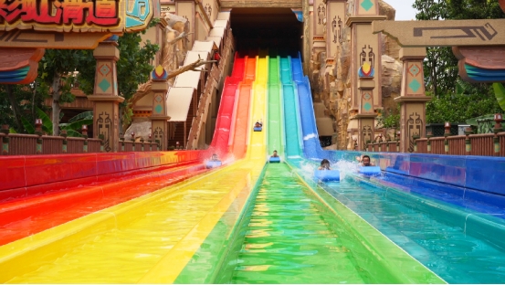 资阳方特水世界是华强方特集团以熊出没大电影《熊出没·原始时代》为创意背景独家打造的大型合家欢水世界。全园共有17个大型特色水上项目及上百个特色景观,其中多个项目荣膺国际行业旅游协会最佳水上设备奖,为游客提供独一无二的差异化水上游乐体验,满足全年龄段游客需求。《大喇叭》《超级碗》《飞跃河谷》《翻江倒海》等解压又刺激,《飓风湾》《彩虹滑道》《丛林漂流》清凉值拉满,还有《小喇叭》《小飞毯》《蹦蹦岛》可供小朋友尽情嬉戏、欢乐玩耍。
