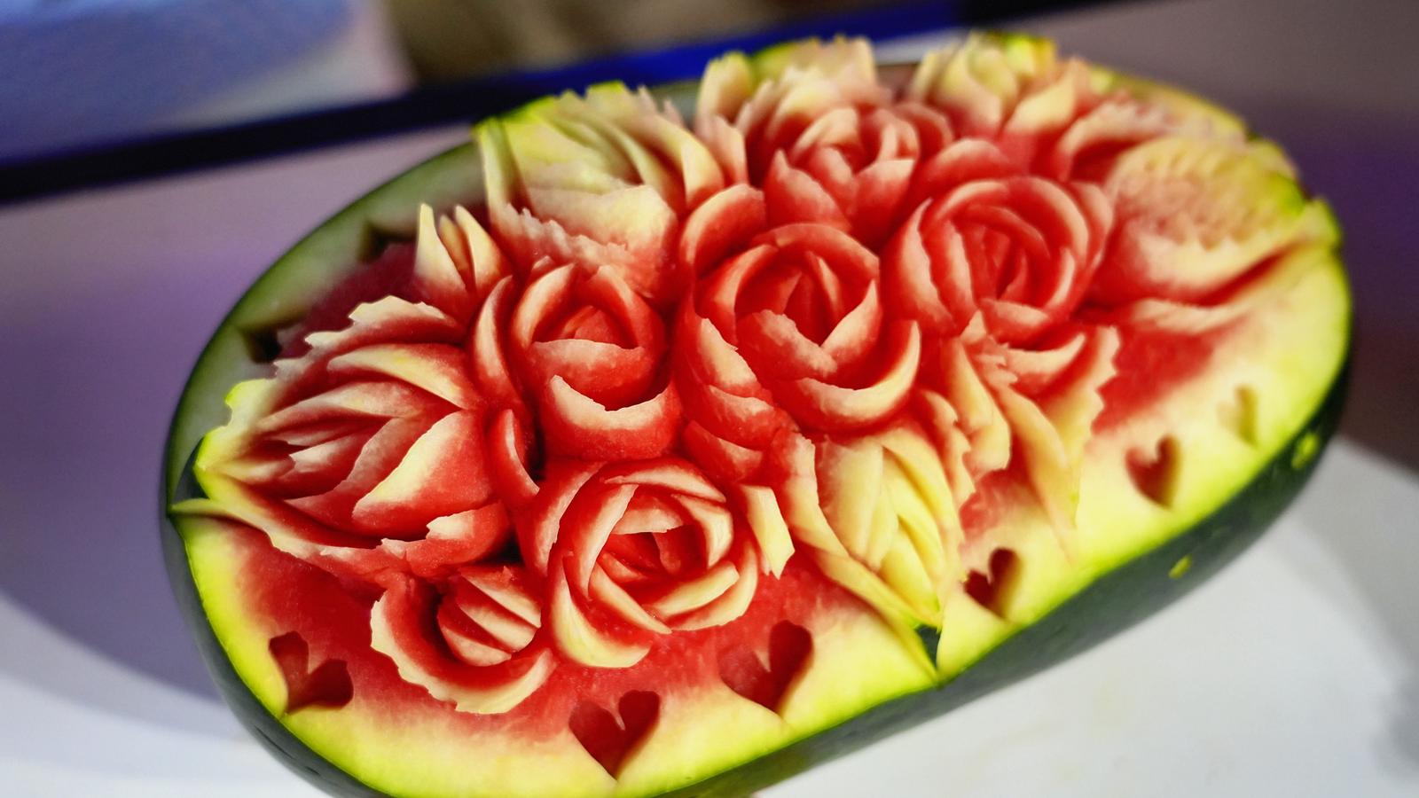 大赛以“‘如哩散洒’巧手雕果,匠心传承”为主题,吸引了众多果雕爱好者同台竞技。选手们以西瓜、哈密瓜、苹果等为原料,凭借精湛刀工与奇思妙想完成作品。经评委团专业评审,选手张彬摘得金奖。