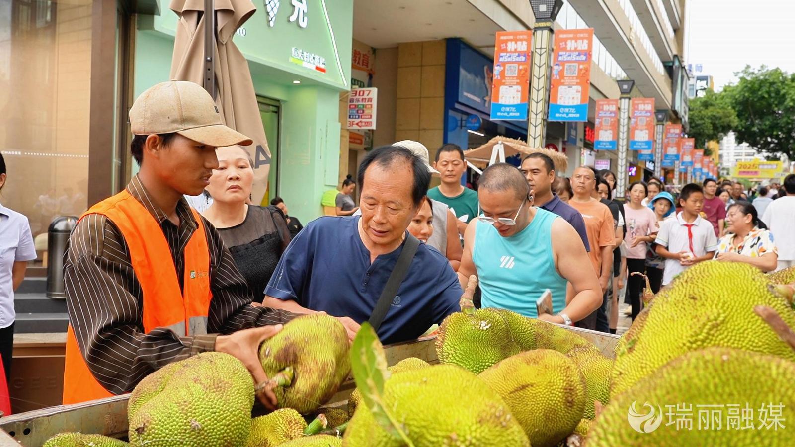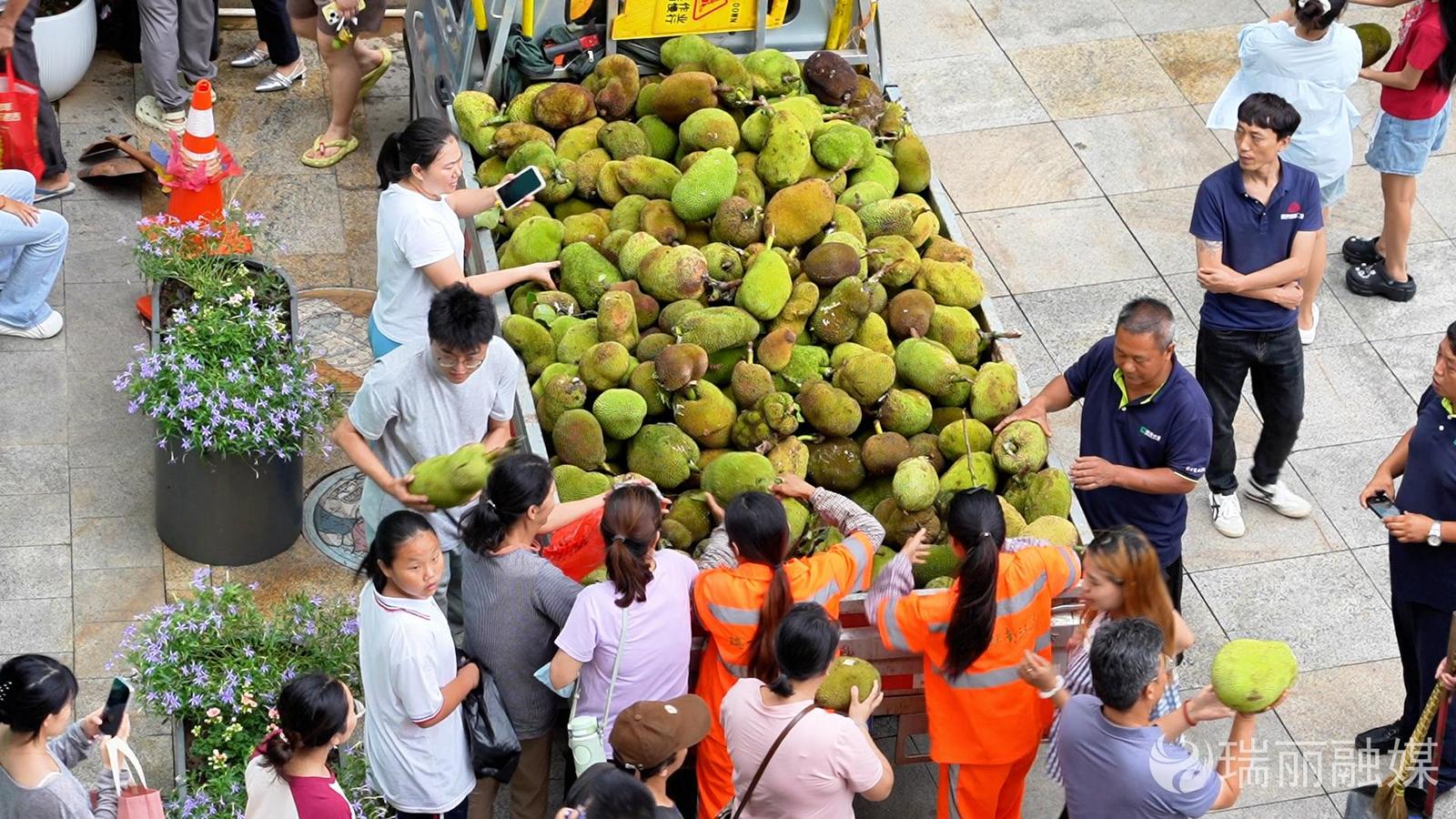 6月27日晚,财富中心广场笑语喧腾,弥漫着浓郁的甜蜜果香。市住建部门向市民免费分发新鲜采摘的行道树菠萝蜜,一颗颗金黄饱满的果实,不仅传递着城市绿化的丰硕成果,更让大家在果香萦绕中,共享这份独属于城市的温情与暖意。