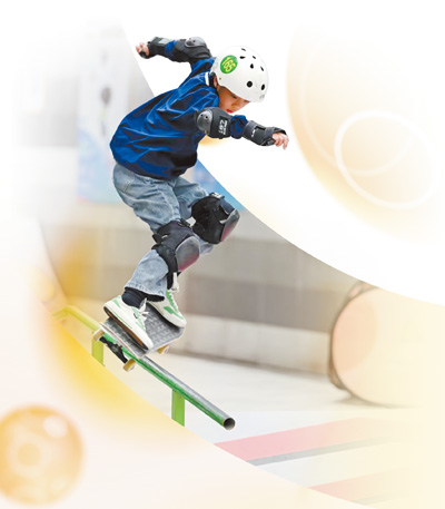 从此,滑板成了李柏纬的勇气“开关”。每周课余,他用在滑板练习上的时间接近20个小时。“滑板让我不怕摔、不怕疼,摔10次也能在第十一次冲上去!”他眨眨眼,露出膝盖上的创可贴。