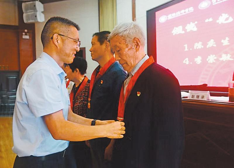 楚雄技师学院为6名老党员颁发纪念章。