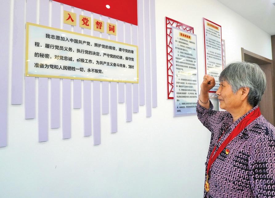 姚菊英重温入党誓词。