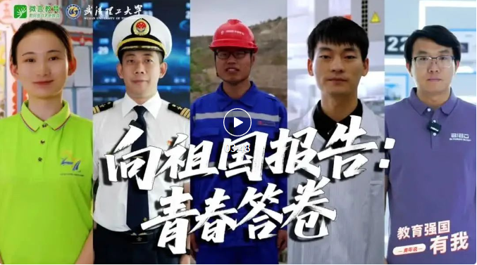 习近平总书记强调,希望广大青年坚定理想信念,厚植家国情怀,练就过硬本领,发扬奋斗精神,到祖国和人民最需要的地方发光发热,为中国式现代化建设贡献青春力量。教育强国建设,青年何为?“七一”之际,教育部政务新媒体推出“教育强国,有我!”网络主题宣传活动之“青年说(报国篇)”系列,展现青年学子将个人理想融入国家发展的青春担当。今天,跟教育小微通过1个视频和1组海报,一起来看武汉理工大学学子如何用青春向祖国报告——