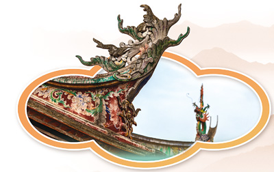 在闽南、岭南地区,因沿海渔盐之利,舟船形象作为百姓的生活寄托而被塑于屋脊,由此产生了众多形制夸张的飞檐屋面。闽南建筑的燕尾脊飞檐展现出独特的地域特色,形如燕尾分叉,寓意家族兴旺。福建泉州关岳庙不仅檐角为起翘连续的曲线,正脊也做成大弧度曲线,以特有的剪黏工艺,镶嵌人物、花卉主题的彩瓷图案,装饰祥禽瑞兽,充满市井生活气息。