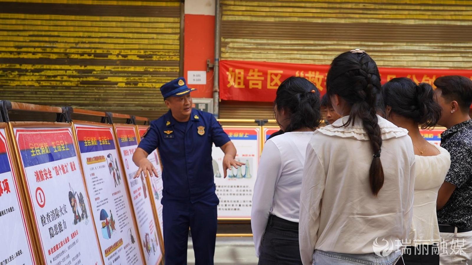 活动现场,市供电局工作人员采用中缅双语讲解用电安全规范和食品储存要求,并通过互动问答强化知识点。消防员演示灭火器“提、拔、握、压”操作步骤,指导参训人员现场实操。现场还设有消防知识展板,以图文形式展示安全标识识别和逃生路线规划。活动最后,志愿者走访昌源商场商户,排查电路隐患,重点讲解配电箱安全知识并发放宣传资料。