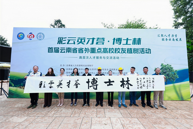 毕业于清华大学、北京大学、中国人民大学、北京师范大学、南开大学、云南大学、东京大学等国内外60余所高校的百余名博士及部分重点高校校友代表齐聚一堂,共同种下象征希望与智慧的“博士林”,将营造“近悦远来”的人才生态与建设“绿美云南”的生动实践深植于云岭大地。
