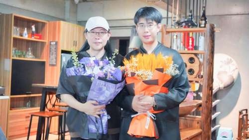 「玄衿」创始人颜昊燚与《非常交易》导演黄健合影