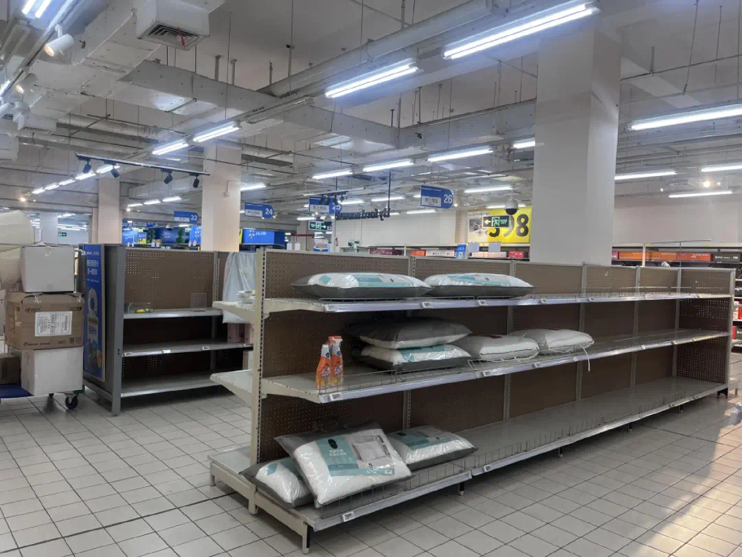 商场二楼、三楼不少货架已经清空,有零零星星的顾客正在购物。有顾客对停业一事已经知晓,有的还不知情。