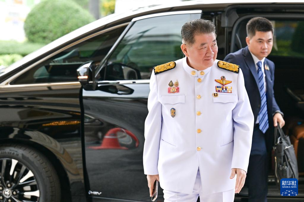 7月3日,普坦(前)抵达位于泰国曼谷的总理府。新华社发(泰国总理府供图)
