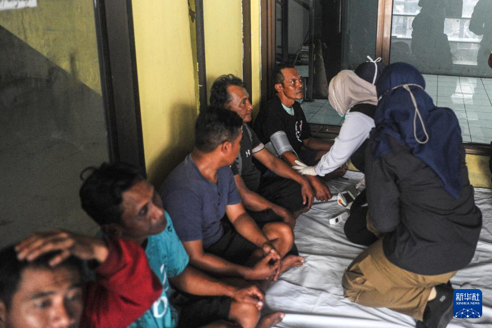 7月3日,印尼东爪哇省的吉打邦港,工作人员检查幸存者的情况。新华社发(萨赫兰摄)