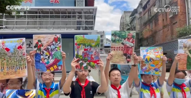 记者在送别的人群中看到,一些小学生将救援时的场景画成画举在手里,向救援队表达谢意。