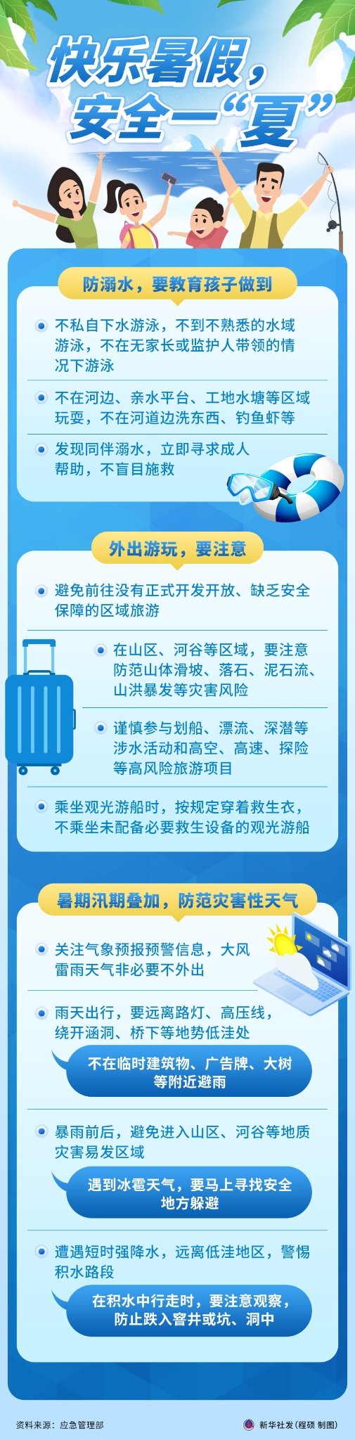 各地中小学生陆续迎来暑假,暑期、汛期叠加,安全风险隐患增多。快乐过暑假,安全不放假。这份暑期安全提示请收好。