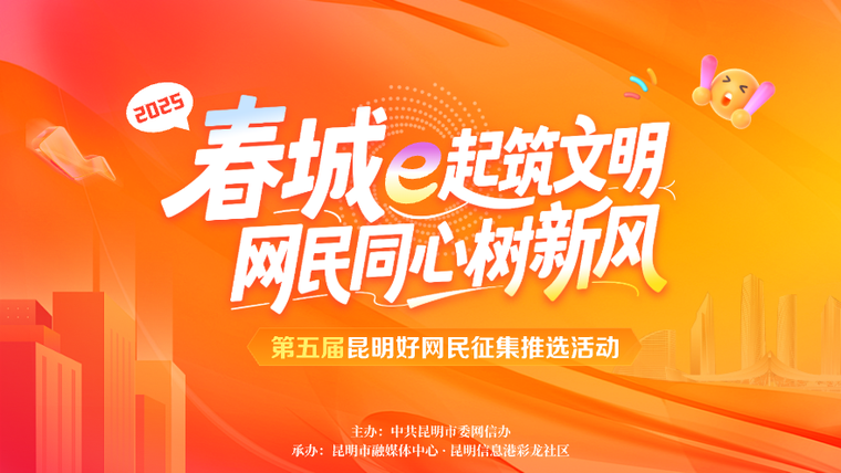 本次活动以“春城 e 起筑文明·网民同心树新风” 为主题,即日起面向社会各个领域、各行业开展征集。活动旨在充分发挥网络榜样在弘扬网上正能量、建设清朗网络空间中的重要作用,引导广大网友争做时代的书写人、追梦的奋斗者。活动将通过组织推荐和个人推荐两种方式进行申报,围绕正能量内容传播类、网络爱心公益类、网络安全普法类、乡村振兴数字赋能类和教育科普素养类五大领域面向社会广泛征集推选“昆明好网民” 代表人物。