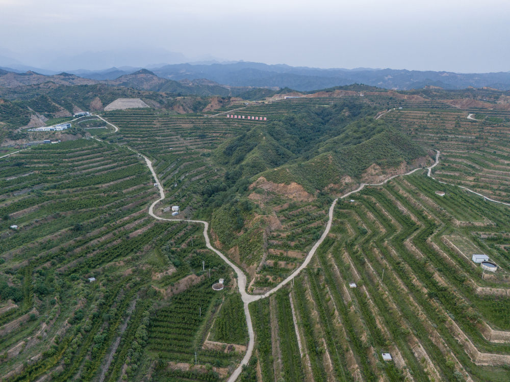 这是7月4日拍摄的阜平县高效林果产业示范园区。(无人机照片)新华社记者 李鑫 摄