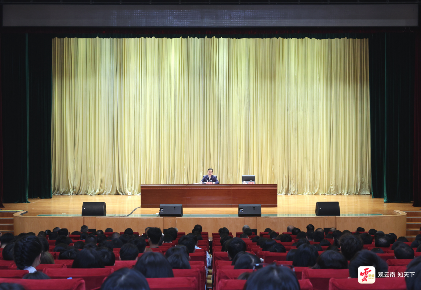王宁与师生一起回顾习近平总书记考察云南感人场景,共同领悟总书记对云南发展的殷切期望、对边疆各族人民的深情厚爱,以党的作风建设为主线,聚焦作风之问、发展之变、青年之责,为大家讲授了一堂主题鲜明的专题党课和思政课。