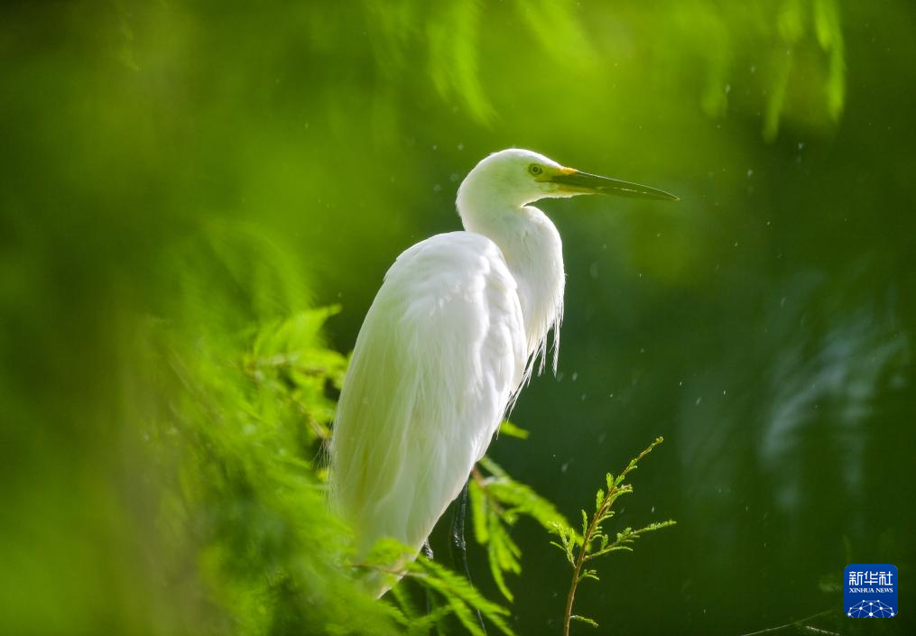 这是7月7日在昆明滇池海洪湿地公园拍摄的白鹭。新华社记者 陈欣波 摄