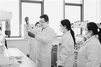 ▲陕西师范大学化学化工学院教授杨鹏课题组在进行ALP保鲜涂层相关研究。
