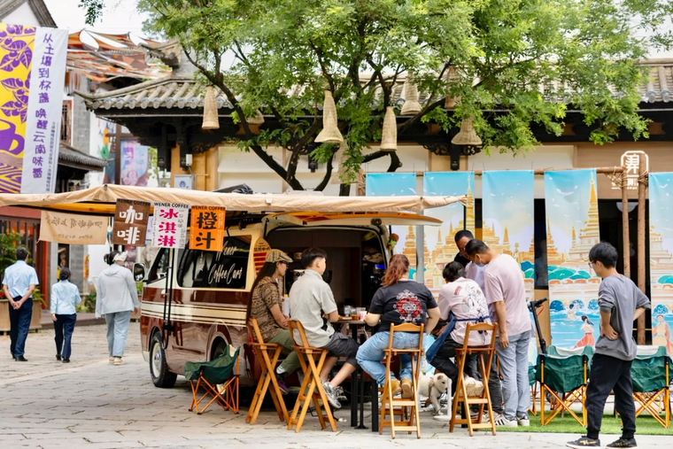 在昆明故城入口前街,以咖啡市集为载体,集合了奔爱、后谷、顽石、景兰、中啡、三更鸟、苦之道、I/AM、保山香猫等16家云南本地庄园精品咖啡豆,构建“民族+潮流”消费场景。“我们希望游客来到民族村,不仅能够品尝到口感风味不一样的咖啡,也能够挑选到喜欢的咖啡豆带走。”民族文化节的工作人员介绍。