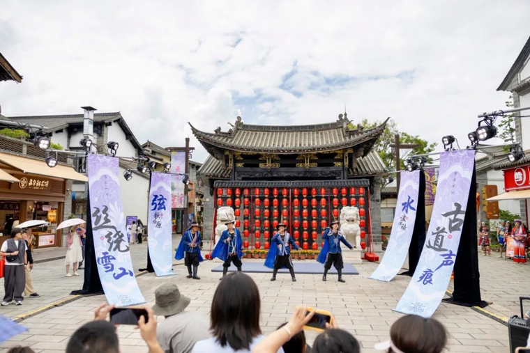 昆明故城内,随处可见精心布置的主题花墙、充满民族元素和故事的打卡装置,游客可以在游览中充分感受民族文化的独特魅力。节日期间,茶马广场的马头琴表演、瓦猫广场的非遗手作、四方来歌广场的傣迪、南岸水上舞台的民族乐队表演……一场场视觉与文化交融的盛宴轮番上演。
