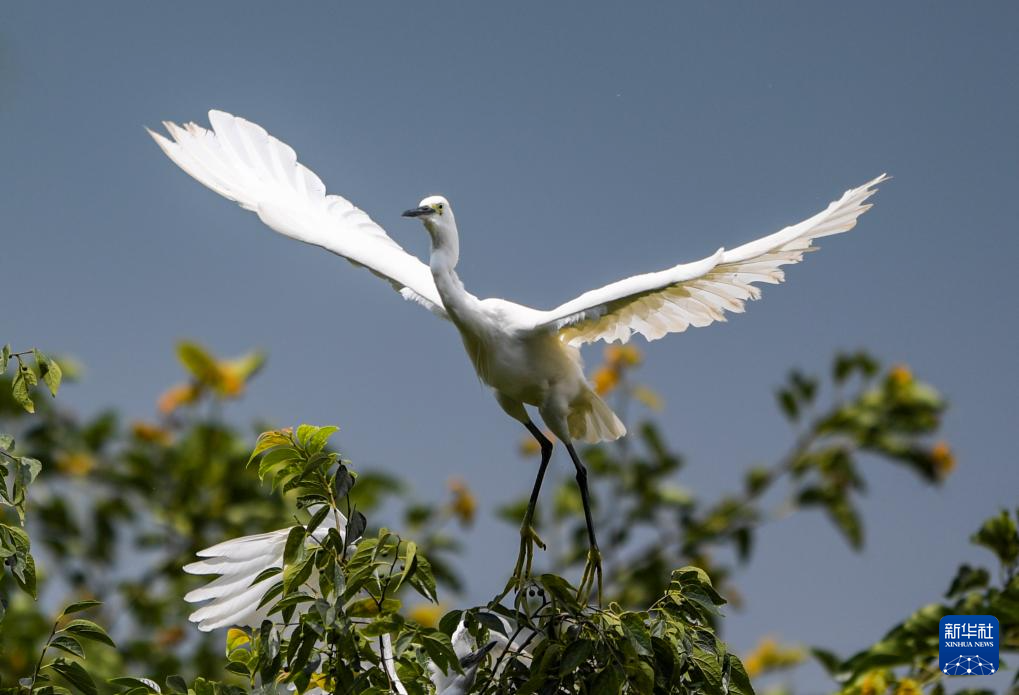 这是7月7日在昆明滇池海洪湿地公园拍摄的白鹭。新华社记者 陈欣波 摄