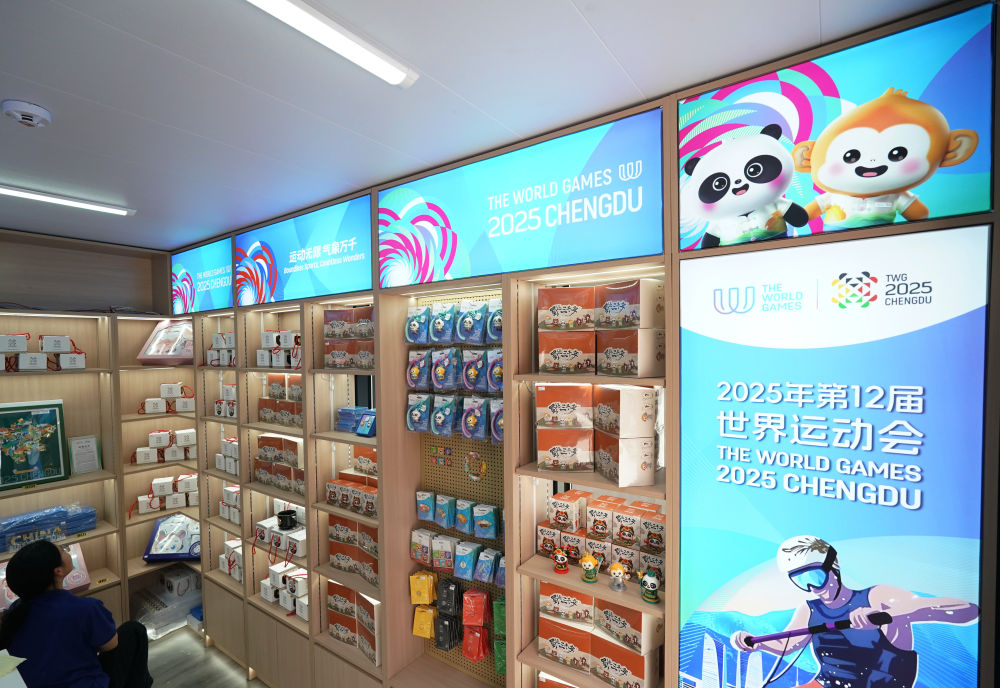 这是4月29日拍摄的成都世运会官方特许商品零售店“北京首店”内景。新华社记者 张晨霖 摄