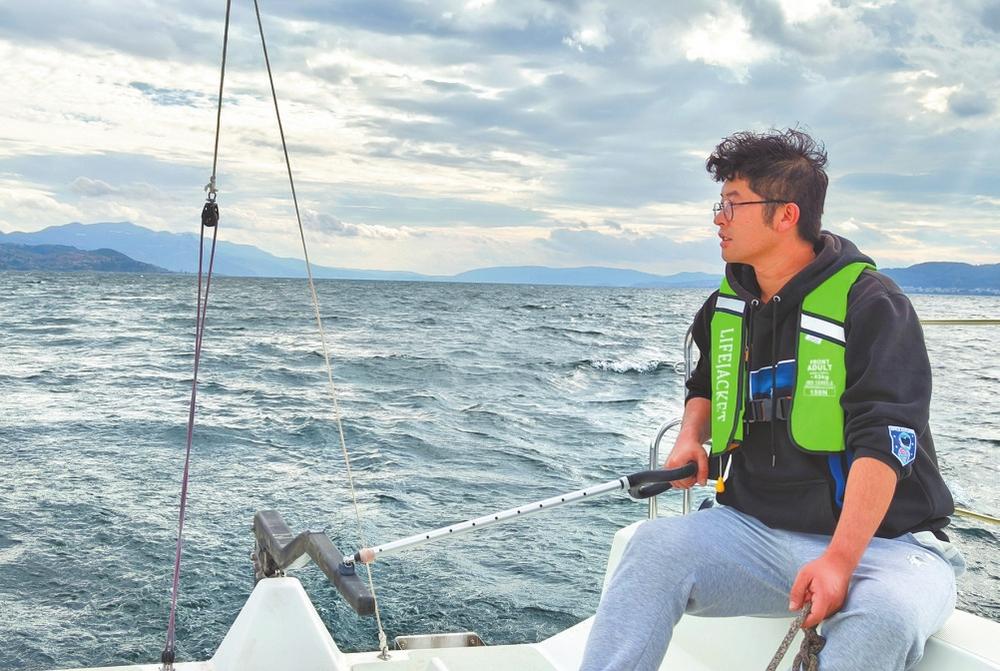 抚仙湖的西南风刚掠过矣渡湾,云湖水上运动有限公司抚仙湖帆船基地教练杨金鹏已经站在帆船的舵前。他脚踩船舷,身体随着风浪倾斜45度,右手迅速调整帆绳,帆布“啪”地一声被风灌满。这个动作,他在高原湖面上重复了7年,这名上海海事大学航海技术专业的毕业生,如今变成了抚仙湖最懂“借风”的人。