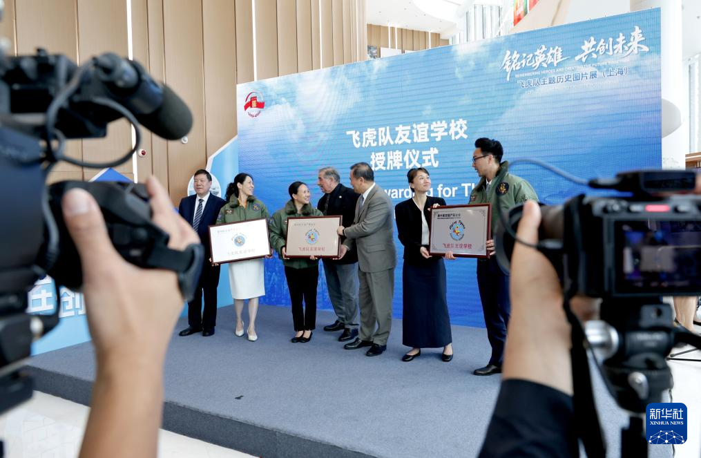 7月8日在图片展开幕活动上拍摄的飞虎队友谊学校授牌仪式。