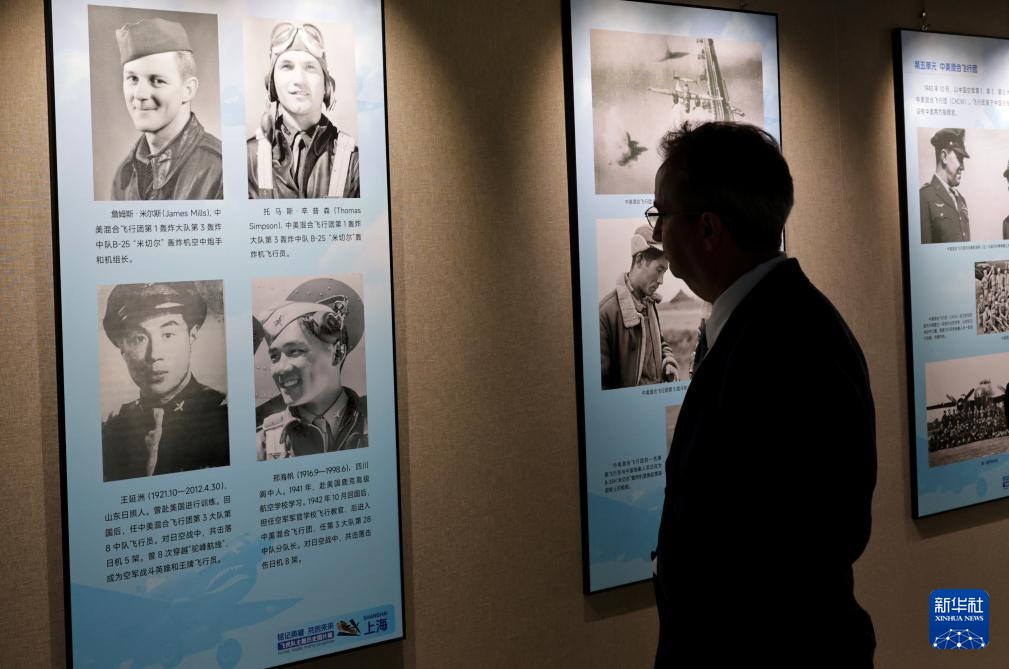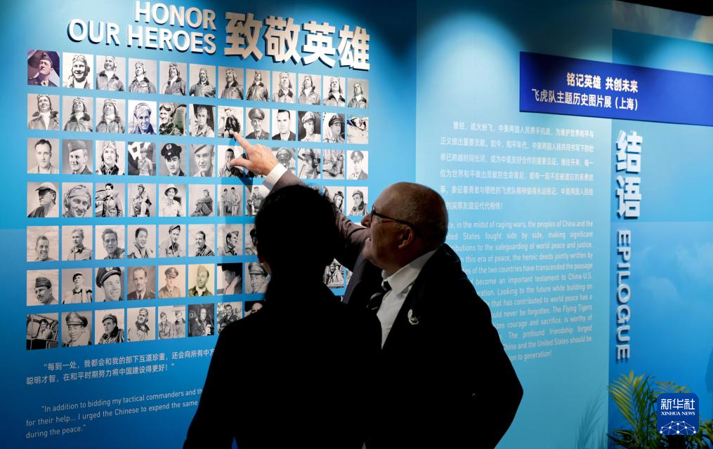 当日,“铭记英雄 共创未来”飞虎队主题历史图片展在上海黄浦文化中心开幕。本次展览汇集超200张飞虎队主题图片以及60余件飞虎队老兵捐赠的实物展品。新华社记者 方喆 摄