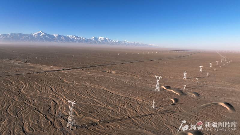 2025年3月23日,和田—民丰—且末—若羌750千伏输变电工程从昆仑山下方通过。马元 摄